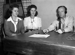 Civil Aeronautics Administration communication system. Scenes for Civil Aeronautics Administration School: Marcella Gardner, left, and Marilyn Miller, center, both of Okhlahoma City, being taught by H. J. Towsend.