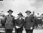 Camp Hood. Dedication. Left to right, W. J. Davidson, L. S. Sheldrick and J. E. Johnson, all producers of tank destroyer equipment.