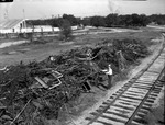 Scrap Metal Salvage Campaign. John B. Newland looking at huge pile of scrap metal.