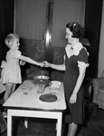 Patricia Sue Johnson helping her mother, Mrs. H. B. Johnson.