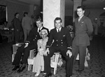 Reception at Officer's Lounge at Hotel Texas. Miss Josephine Kennady shown with Ensign A. D. Sheach, left, and Ensign P. A. Renaud and Lieutenant R. E. Pryor, right.