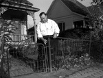 Scrap Metal Salvage Campaign. A. L. Bailey looking at his iron fence.