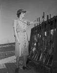 Photographed here at the Sportsman's Rod and Gun Club were a group of shooters and Mr. and Mrs. Fred Etchen of Wichita, Kansas, who teach safety with guns as well as how to shoot targets. Shown here in the picture is Mrs. F. Kirk Johnson selecting a gun. Guns are seen to be placed next to Mrs. Johnson.