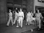 Tarrant Field. Lieutenant W. Houston (foreground, carrying bags) and guards.
