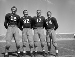 Football. Texas Christian University (T. C. U.). Backfield left to right, Charley Conway, Ralph Porter, Don Ezell and Dean Bagley.