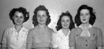 Patton, Barbara; Luke, Leona; Lynch, Joanne; Jones, Betty Lou; Our Lady of Victory College; Sodality; Officers; Students; Hair ornaments; Dresses; Clothing & dress