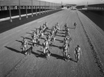 18 trained Army dogs with guards at the Fort Worth Quartermaster Depot.