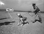 Trained Army dalmatian dog, "Traffic," at the Fort Worth Quartermaster Depot.