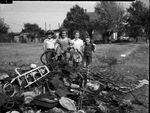 Scrap Metal Campaign. Left to right, Donald Wylie, Mary Frances Cloud, Peggy Cox and Kyra Blanton with pile of scrap metal.