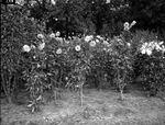 View of Dahlias at Fort Worth Botanic Garden, Texas. The section shown here has been damaged by wind and rain, however, there still should be approximately 1000 blossoms the following Sunday. Sunday has been designated Dahlia Field Day at the Fort Worth Botanic Garden. Luther Pope, in charge of the garden, will give information about this plant. The public is invited. Published in Fort Worth Star-Telegram evening edition, October 16, 1942.