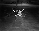 Ice skating rink opens at Will Rogers Memorial Coliseum; Mary Louise Ballard and Technician 5th Grade Bert Beebe of Long Island with the 18th Machine Records Unit (Mobile) try out the ice before the rink's opening and take a spill, 10/20/1942