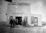 Shown here is a copy of photo of the Witt and Spikes General Merchandise Store, Crosby County, Texas. This is one of the two pioneer establishments of Crosby County. In front of the store are some people sitting and standing at the entrance. Mr. John M. Witt died in 1927, and Mrs. Witt lives in Lubbock. This old picture belongs to her daughter, Mrs. J. J. Spikes of Floydada. Published in the Fort Worth Star-Telegram morning edition, November 29, 1942.
