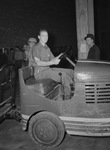 Seminary students who work at the Lake Worth Bomber Plant. Reverend Wilbur T. Reid is shown driving a plant vehicle.