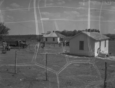 Scenes from Tarrant County's homicide to which a 15-year-old farm boy confessed. Murder case. Scenes of the murder of Mrs. Clifton Beck. Shot showing the home of Mr. and Mrs. Clifton Beck. The A. C. Butler home is seen in the background.