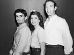 Polytechnic High School Senior class officers. Left to right: Weldon Peacock, Jeanne Fox and Tom Orr. The three are shown standing in front of an empty wall, with one behind the other. The boys are wearing long-sleeve shirts and trousers while Miss Fox is wearing a short-sleeve blouse and a belted skirt.
