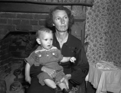 The 14-month-old baby made motherless when Mrs. Clifton Beck, 20, was wounded fatally at her home northwest of Fort Worth, is shown here with Mrs. Beck's mother, Mrs. O. D. Cox of Glen Rose, mother of Mrs. Clifton Beck, the slain woman. Mrs. Cox is holding her 14-month old grandson.