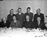 Transportation advisory panel of the County Rationing board. Left to right, front row, Roscoe Carnrike, W. R. Martin, Ed Sproles, and D. Holmes Smith. Back row, Harry A. Williams, Ben Dupree, Langdon Reaves and W. O. Compton.