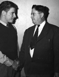 Tarrant County Judge Dave Miller is the proud father of Dave Miller Junior. The judge has been his son's best fan through four years of football at Amon Carter Riverside High School and his freshman year at Baylor University. Dave Junior, eighteen, is moving on from football and college to enlisting in the Navy. He is shown shaking hands with his father. Dave Junior is wearing a dress shirt, necktie, sweater vest, and striped trousers. Judge Miller is dressed in a suit.