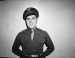 Lieutenant John C. Hayes is a soldier in the Army Air Forces. He is in Fort Worth, Texas, on emergency leave to visit his mother, Mrs. A. M. Hayes. Lieutenant Hayes has spent the last ten months on foreign duty in Alaska as a bomber pilot. He is shown standing against a wall in an at ease position. He is dressed in his military uniform.