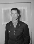 Captain Cooper Conner, standing in front of a door, wearing his military uniform. He is a graduate of Polytechnic High School and the University of Texas, as well as the University Medical School at Galveston, Texas. He entered the Army in 1940 after returning to the United States from working in the American Hospital at Paris, France.