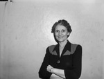 Mrs. Ruby Lee Townsley is one of the newest recruits to the Women's Army Auxiliary Corps (W. A. A. C.). She is a Fort Worth, Texas, native and is the daughter of the late Mr. and Mrs. R. B. Pratt. Mrs. Townsley is shown standing against a wall with her arms crossed. She is wearing a button-up blouse and has a wrist-watch on her left wrist.