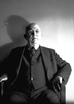 Jack Horner. Horner is shown sitting in a chair wearing a dark suit and a pair of eyeglasses. He appears to be looking to his left towards a light coming from that direction.