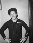Jack Randall is a sailor in the United States Navy. He is one of the survivors of the Navy Destroyer Blue, that was sunk in the Solomon's shortly before Labor Day. Randall is a fireman first class. He is in Fort Worth, Texas, on furlough visiting his parents, Mr. and Mrs. Evern Randall. Randall has been in the Navy for two-and-a-half years. He is shown standing with hands on his hips, dressed in his military uniform.