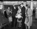 Gasoline Rationing. Ray Weir, Service Station operator, selling gas to (left to right), Franz Schubert, Charlene West, Keller: Joe Moss and Adeline Daniels.