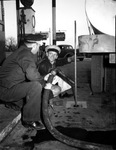 Gas Rationing , etc. C. C. Armbrust, left, and T. C. Cox, replenishing their gas supply.