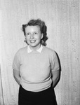 Mrs. Lois Kruger is a social worker with the American Red Cross. She will be taking over social case supervision for the chapter in Tarrant County, Texas. Mrs. Kruger's husband, David Kruger, is a social worker with the National Labor Relations Board. Mrs. Kruger received her undergraduate degree from Georgia State College for Women, and her graduate degree from Tulane University. The Kruger family moved to Fort Worth, Texas, two weeks previous. Mrs. Kruger is wearing a collared blouse, sweater, and a skirt.