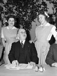 Red Cross. Disaster Dinner. Mark McGee, center. At left is Jean Echols and right, Gloria Echols.