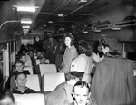 The Texas and Pacific Rail Road Station is overcrowded and over-worked during the holiday season. With soldiers trying to get home for Christmas or back to their camps and civilian travelers, railroad stations across the country have reached capacity. A group of travelers are shown crowding onto a train on a Thursday afternoon. Many of the passengers are standing in the aisle, searching for an empty seat.