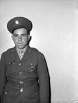 Private Thomas J. Upchurch is a soldier in the United States Army. He is spending a furlough with his parents, Mr. and Mrs. T. J. Upchurch, in Fort Worth, Texas. Private Upchurch is stationed with the Military Detachment at Camp Polk, Louisiana. He is shown standing against a wall, dressed in his military uniform.