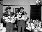 Machacek, Charles A. (Cpl.); Carson, Bruce (Sgt.); Toy Drive; Holidays; Christmas presents; United Service Organization (U. S. O.); Military Police (M. P.); Military personnel; Military uniforms