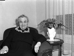 Grunewald, P. C. (Mrs.); Birthdays; Dresses; Chairs; Cameo Brooches; Immigrants; Flowers; Vases; Birthday parties; Brooches