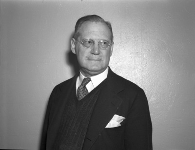 A. N. Kemp, of Los Angeles, California, president of the Pacific Mutual Life Insurance Company. He is standing against a blank wall, wearing a suit and eyeglasses.