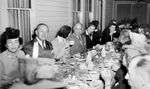 A group of people eating at a party for Chip Roberts on Shady Oak Farm. Amoung this group is Amon Carter.