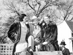 Amon Carter, Sr. (center) sits with two unidentified woman at Shady Oak Farm during a party for Chip Roberts.