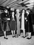 Amon Carter, Sr. (center) stands with four unidentified women at Shady Oak Farm during a party for Chip Roberts.