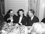Ruth Carter (center) sits with two unidentified men at Shady Oak Farm during a party for Chip Roberts.