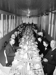 A photograph showing the attendees of a party for Chip Roberts at Shady Oak Farm. The group of unidentified people are seated at a table on the porch at Shady Oak Farm, eating.