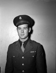 Sergeant Sterling O. Thompson, son of Mrs. Henrietta Thompson, who was among the first to return from the Philippines. Sergeant Thompson has seen action in Australia and the Dutch East Indies. He is now home on furlough, after which he will report to Idaho for duty. Thompson is shown standing in front of an empty wall wearing his military uniform and smiling slightly at the camera. Published in the Fort Worth Star-Telegram evening edition, January 6, 1943.