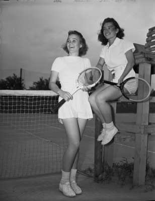Masonic Home and School; Tennis; Tennis players; Tennis rackets; Shorts; Students; Carter, Hattie Sue; Smith, Violet; Umpire chairs