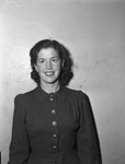 Miss Mary Elizabeth Grove will soon report for training with the Women's Army Auxiliary Corps (W. A. A. C.) at Fort Des Moines, Iowa. She is the daughter of Mr. and Mrs. C. A. Grove. Miss Grove is standing against a wall, wearing a button-up dress and a monogram brooch.