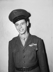 Marine. R. C. Logan. He is wearing a military uniform. He is smiling and has his back to the wall.
