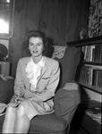 Miss Shirley Elizabeth Hanson married Lieutenant James R. Sheffield on April 3, 1943, in San Antonio, Texas. Mrs. Sheffield is the daughter of Mr. and Mrs. W. F. Hanson. She is living in Fort Worth, Texas, while her husband is stationed at Hicks Field in Saginaw, Texas. Mrs. Sheffield is sitting on a chair, dressed in a blouse, blazer, and skirt. Pinned to her blazer is an Army Air Force wings pin.