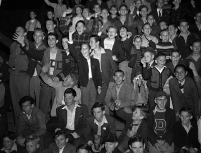 The Fort Worth Cats are home facing the Shreveport Sports at LaGrave Field. Pictured are the crowd of students in the right field stands. One of the lucky boys received a souvenir when Cats outfielder Henry "Prince" Oana smacked a homerun into the stands. The Cats went on to win the game 5-1.