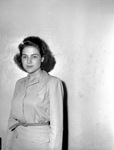 Mrs. Charles C. Smith is shown standing against a wall. She is wearing a button-up dress with a belt around the waist.