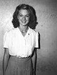 Eureta Mountain, recipient of a citizenship award from the Fort Worth, Texas, chapter of Daughters of the American Revolution. Miss Mountain is shown standing in front of an empty wall, wearing a blouse and a gingham-print skirt. She is the daughter of Mr. and Mrs. L. E. Mountain and a student at W. C. Stripling Junior High School.