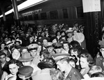 Military personnel; Military uniforms; Texas and Pacific Railway Station; Railroad trains; Crowds